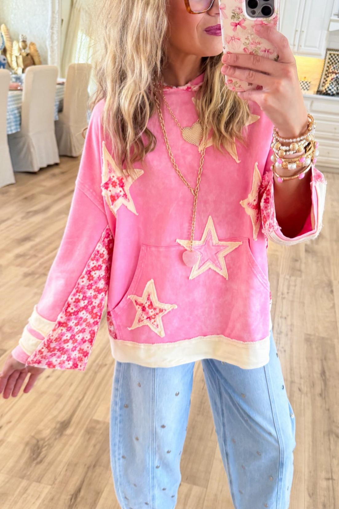 We are so glad you clicked on our new Pink Star Patchwork Hoodie because we really love its casual vibe! The top design makes it a great choice for any fashion girl.